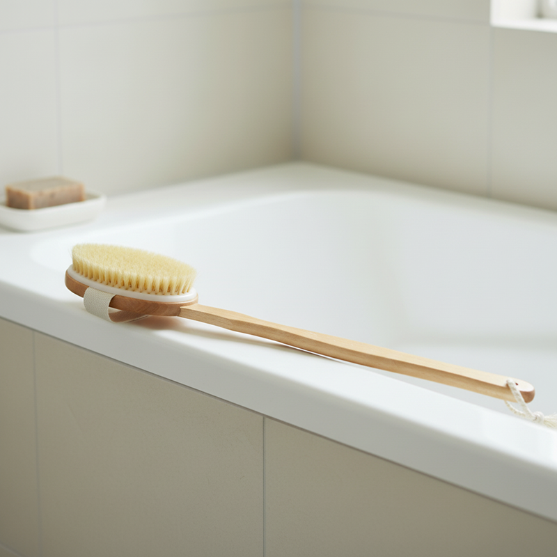 Složitě čistit těžko dostupná místa je teď minulostí. Užijte si hladký zážitek z koupání bez vynechání jakékoliv části těla. Ortorex kartáč má dlouhou rukojeť, což dělá každé mytí jednoduchým a bez stresu. Dřevěný materiál zajišťuje jemný dotyk pro vaši každodenní péči.