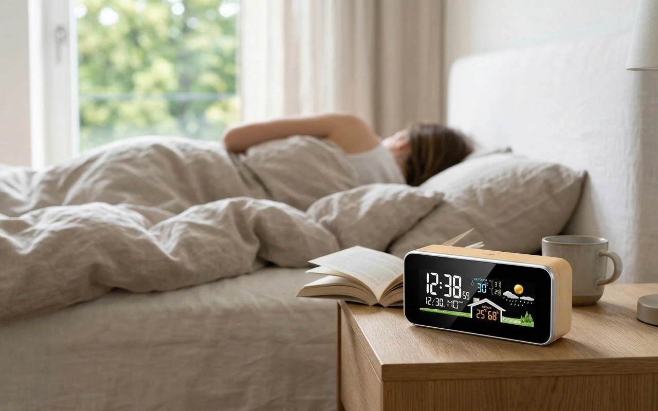Dal jsem si LED hodiny na noční stolek. Přečtu čas i bez brýlí a ztlumené nastavení udržuje pokoj útulný, zatímco stále vidím teplotu.