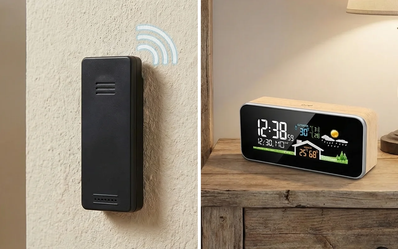 Jsem velmi spokojená s těmito jednoduchými hodinami a měřičem. Vypadají jako skutečná dekorace, ne jako technologie, a přesto každý den jasně ukazují čas, teplotu i vlhkost.