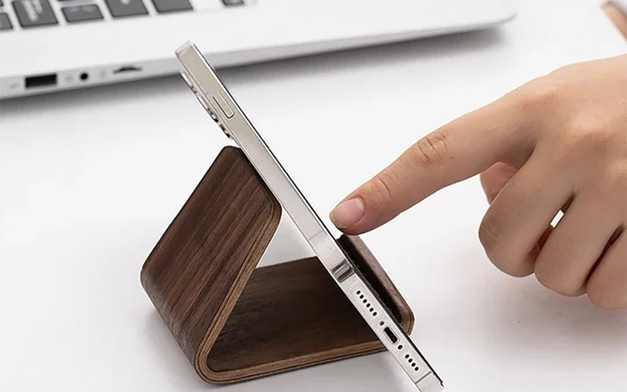 Miluje tento stojánek! Udržuje můj telefon ve vzpřímené poloze, takže kontrolovat zprávy je teď opravdu snadné. Dřevěný povrch krásně ladí s výzdobou mého pokoje.