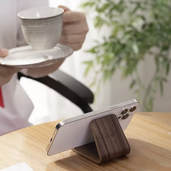 Miluje tento stojánek! Udržuje můj telefon ve vzpřímené poloze, takže kontrolovat zprávy je teď opravdu snadné. Dřevěný povrch krásně ladí s výzdobou mého pokoje.